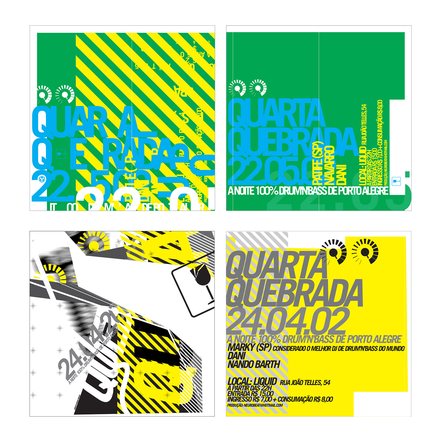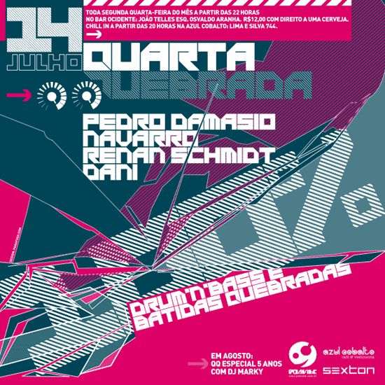 Flyers para festa de drum'n'bass Quarta Quebrada.